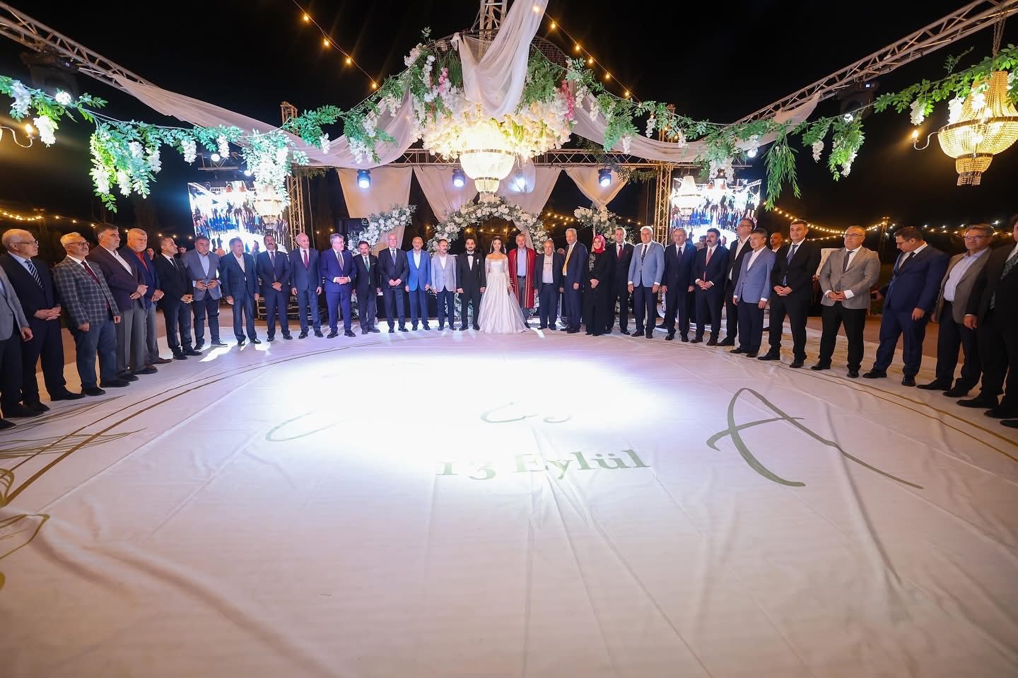 Gelin ve damadın sahneye geliş anı alkışlarla karşılanırken, nikâh töreni renkli ve duygusal görüntülere sahne oldu.